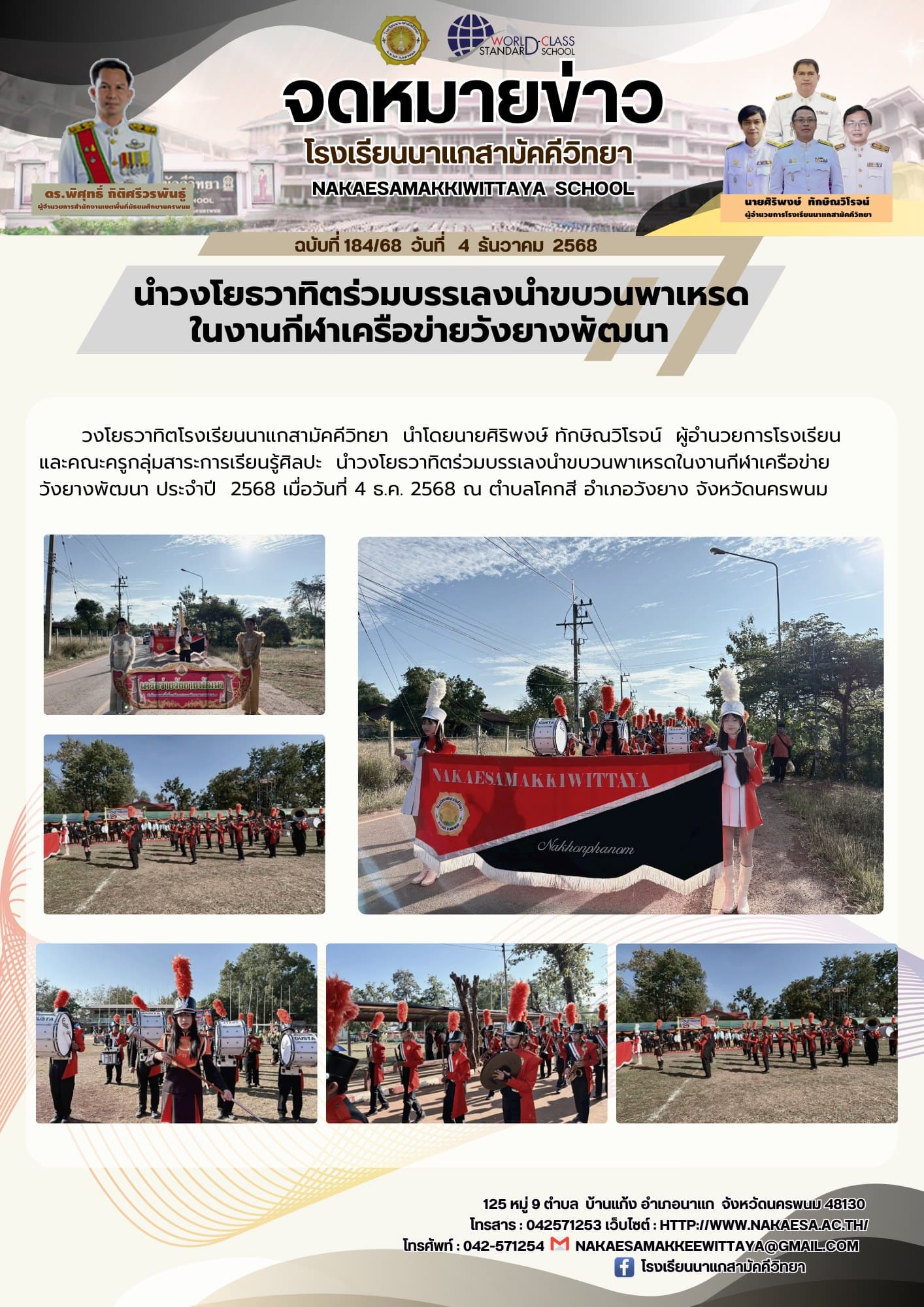 จดหมายข่าว ฉบับที่184/68 นำวงโยธวาทิตร่วมบรรเลงนำขบวนพาเหรดในงานกีฬาเครือข่ายวังยางพัฒนา วันที่ 4 ธันวาคม พ.ศ. 2568